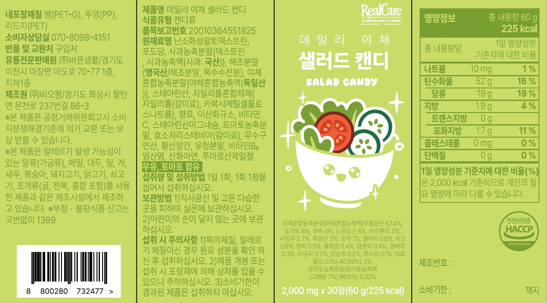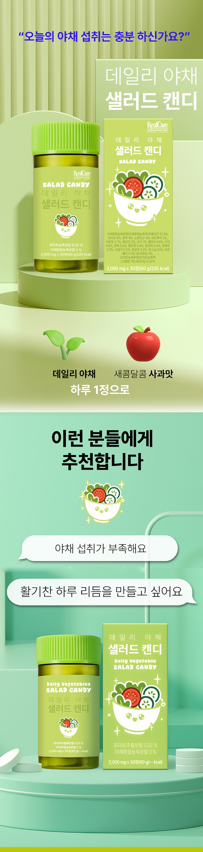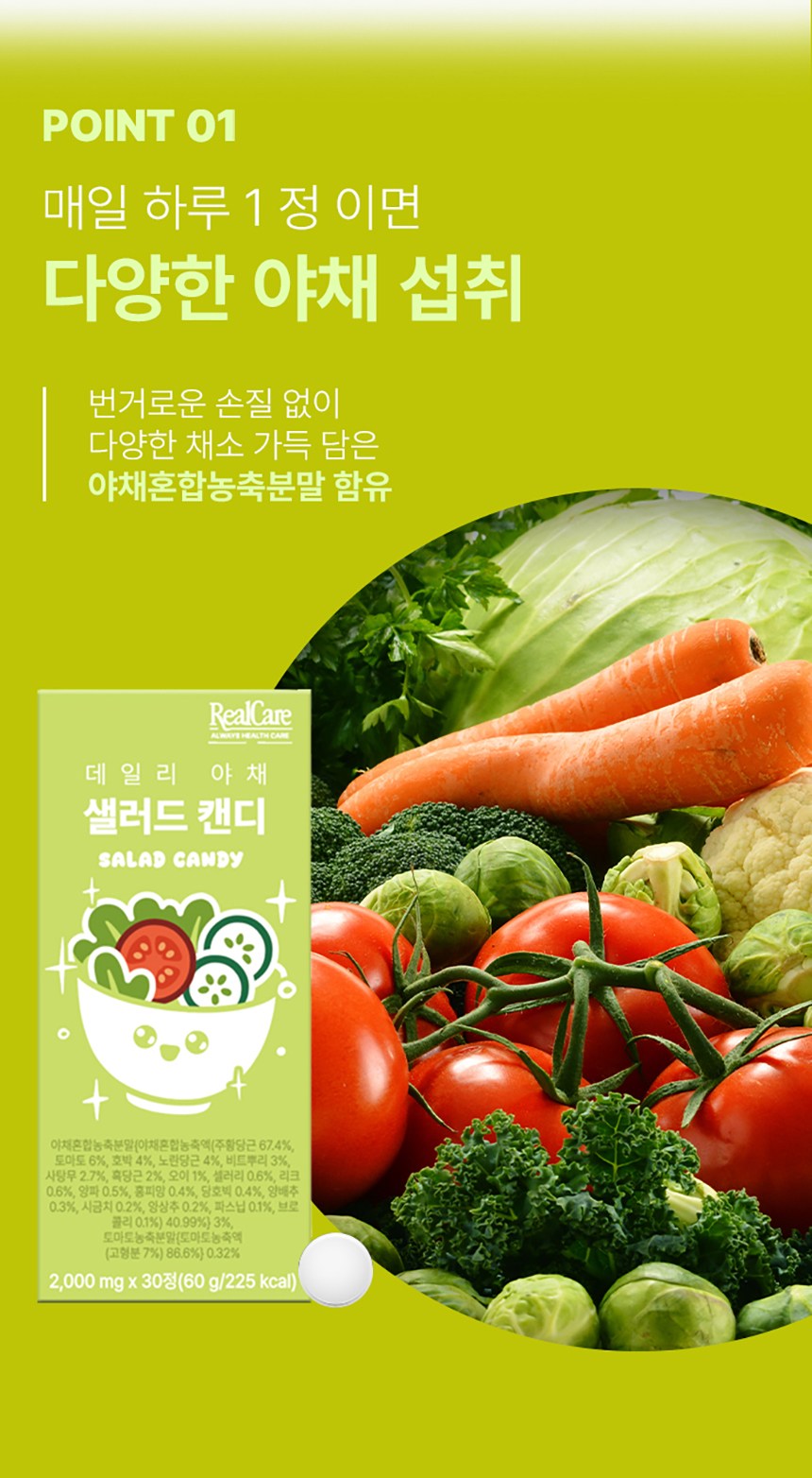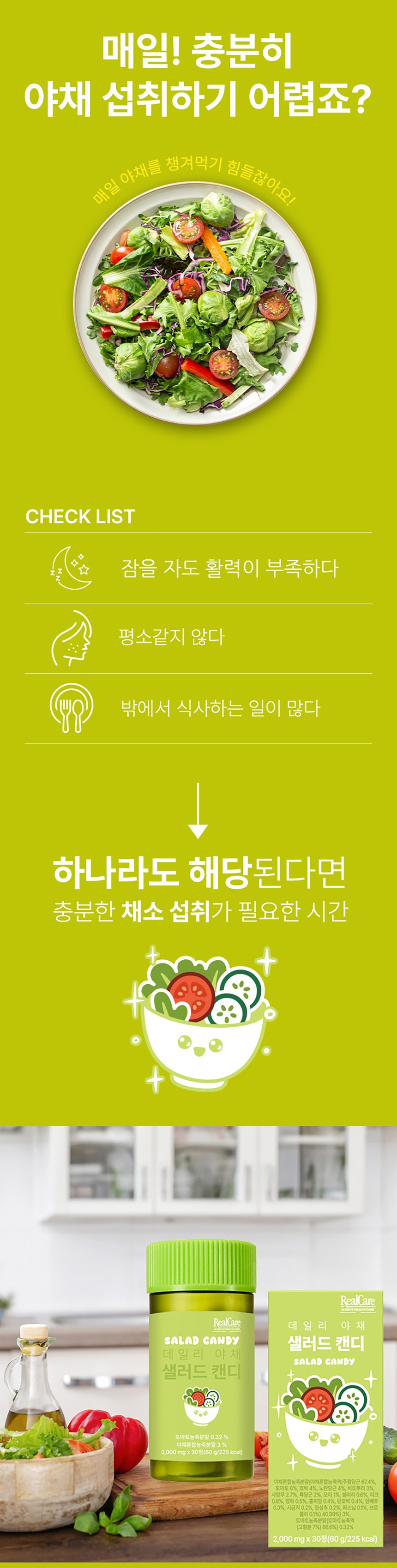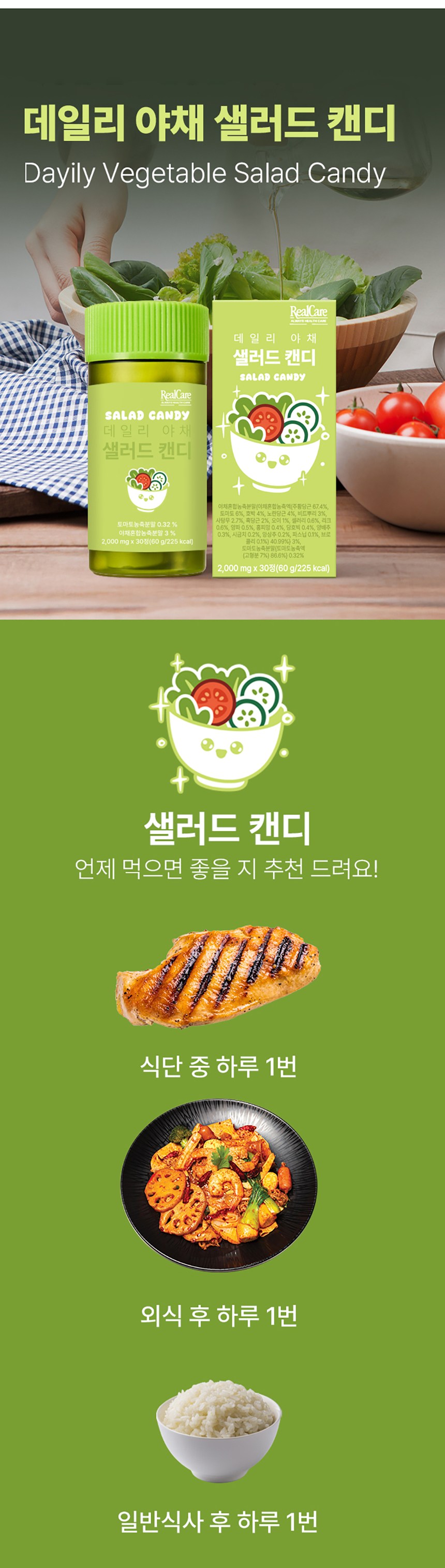 [리얼케어] 하루한알 데일리 야채 샐러드 캔디 2000mgx30정