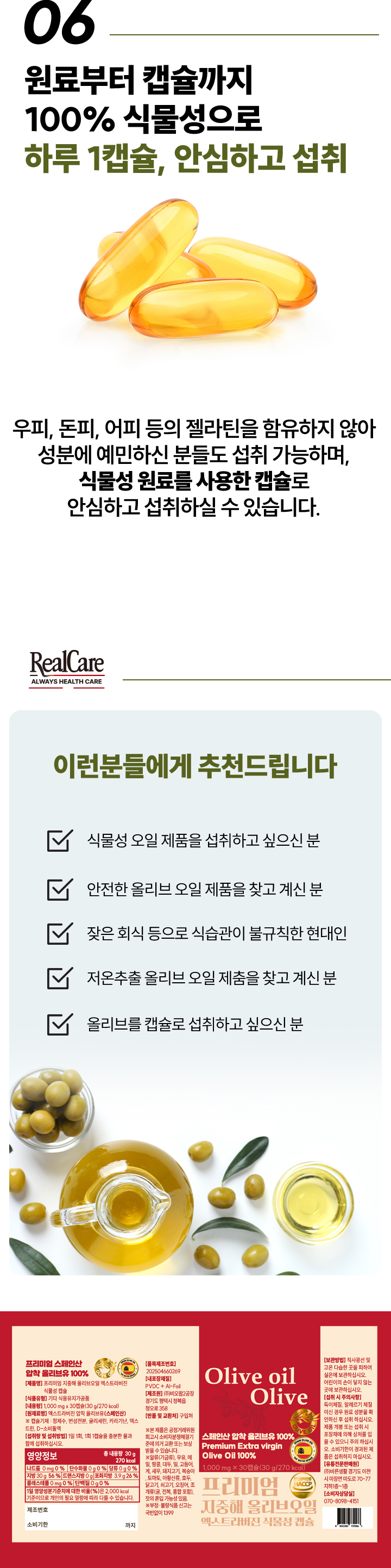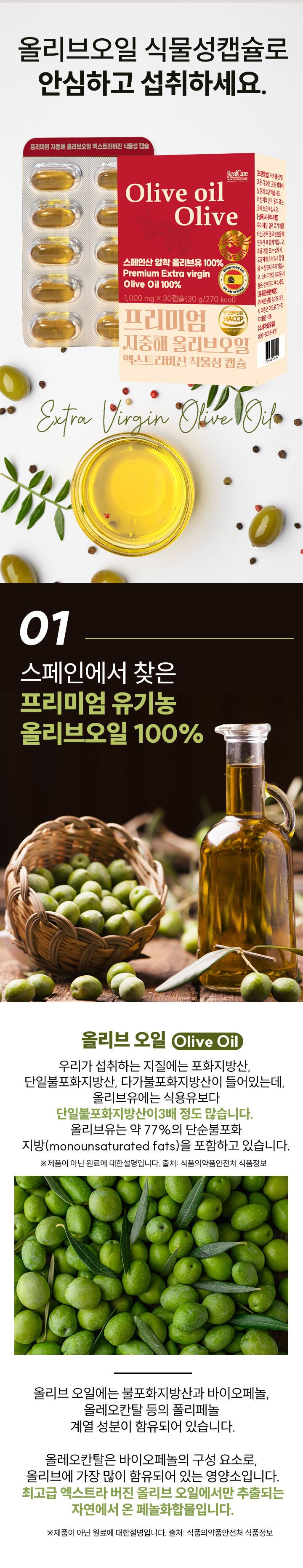 [리얼케어] 프리미엄 지중해 올리브오일 엑스트라버진 캡슐