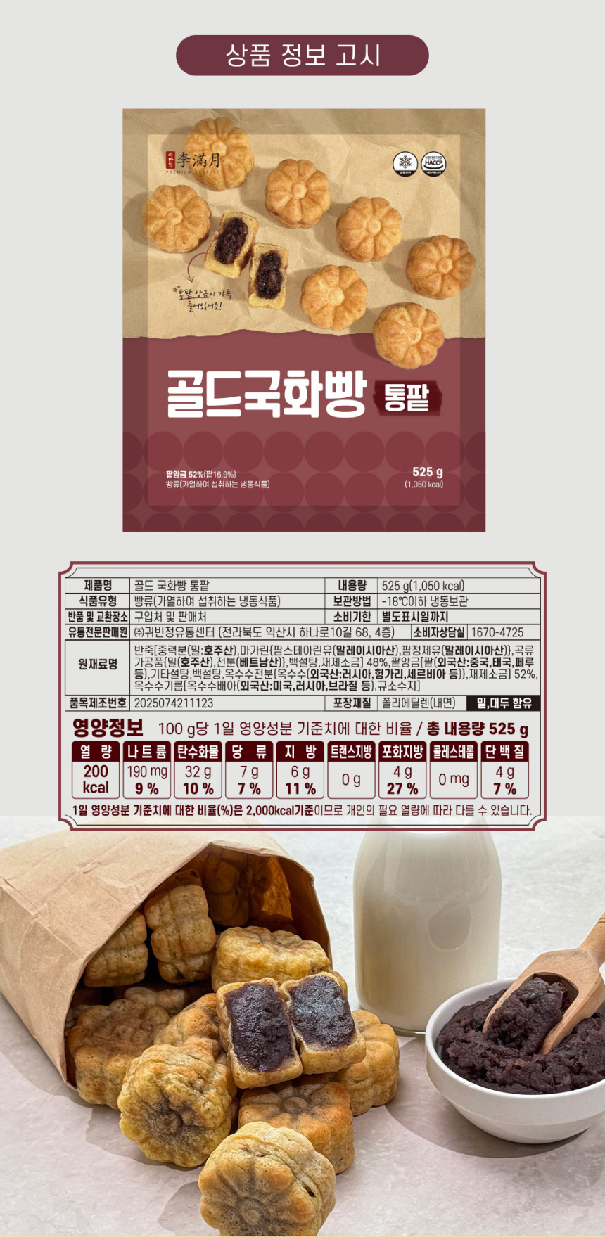 [리만월] 속이 꽉찬 명작 국화빵 팥/슈크림 525g (21개입)