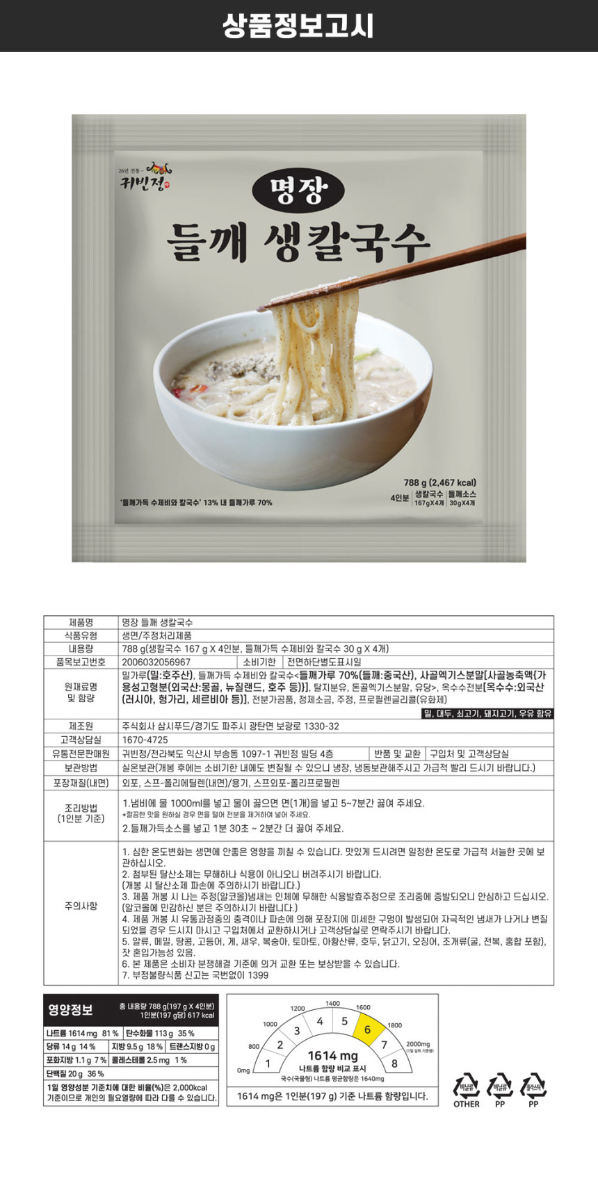 명장 들깨칼국수 4인분+들깨소스4개 - 이미지 1