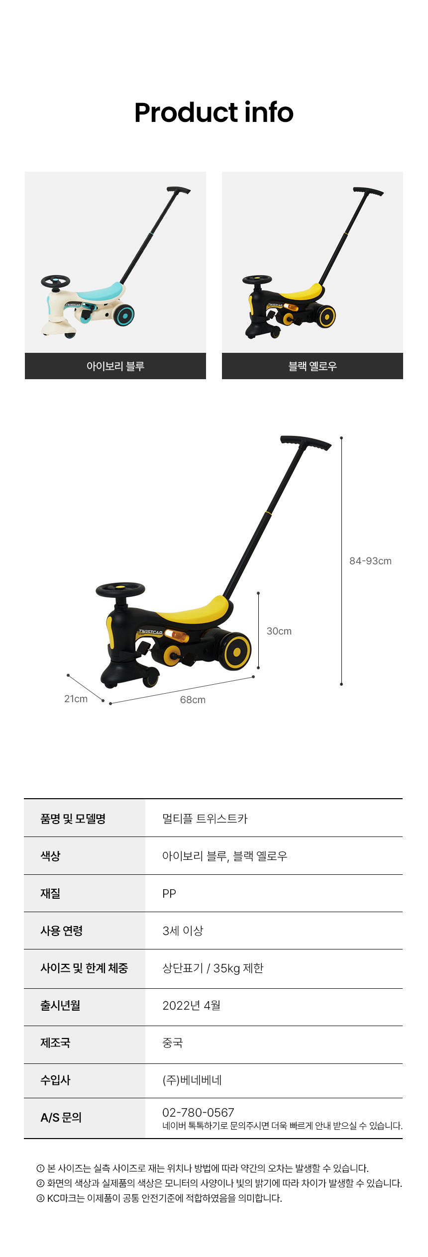 [베네베네] 멀티플 트위스트 핸들카 무소음 붕붕카 자전거 2종 택 1