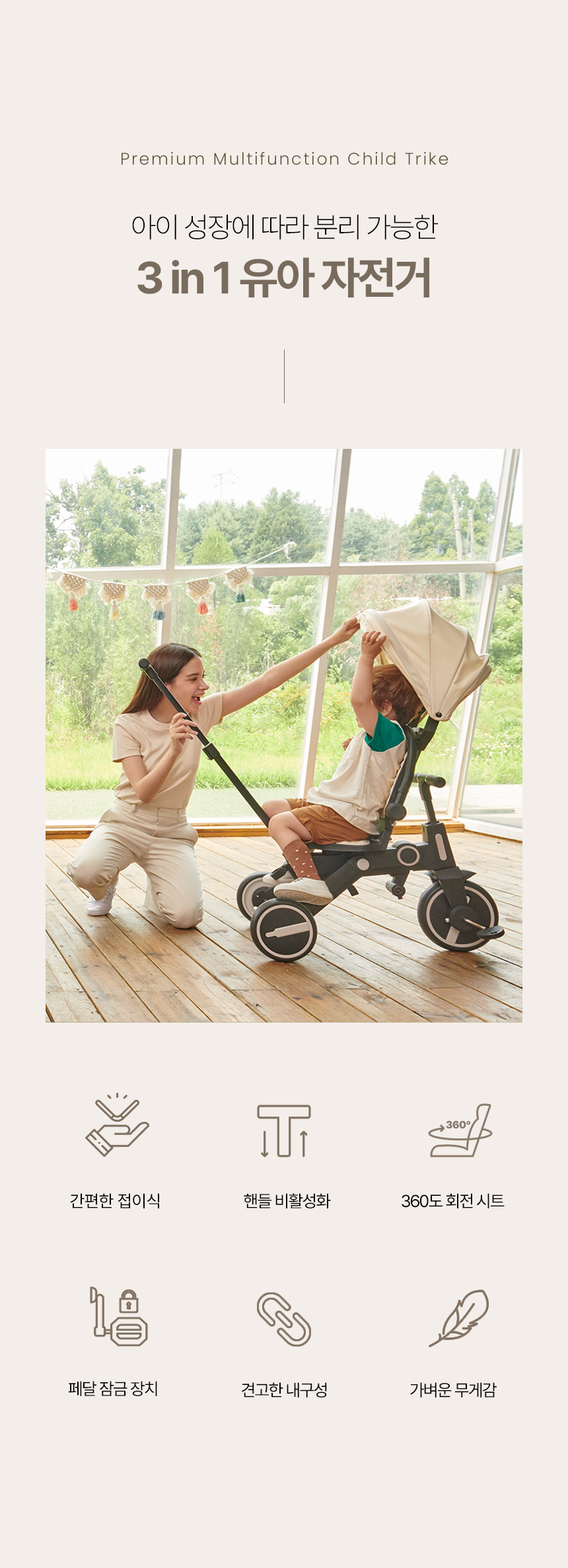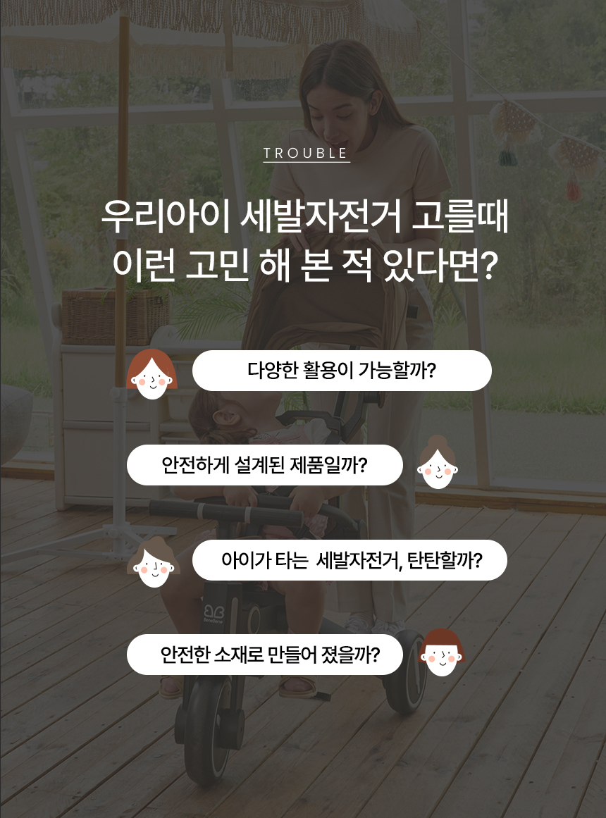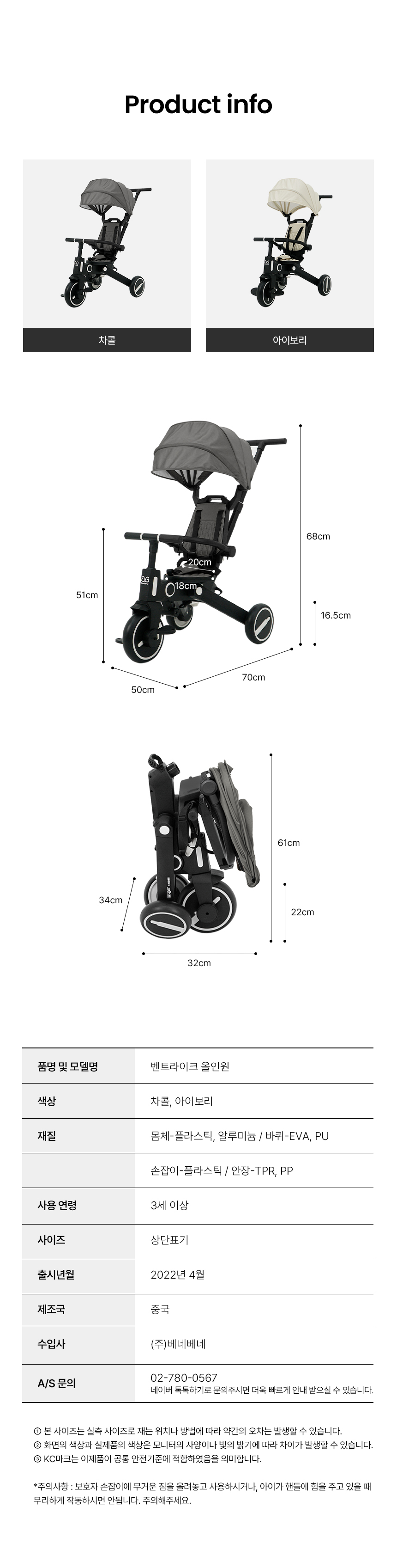 [베네베네] 올인원 접이식 양대면 유아 아기 세발자전거 유모차자전거 2종 택 1