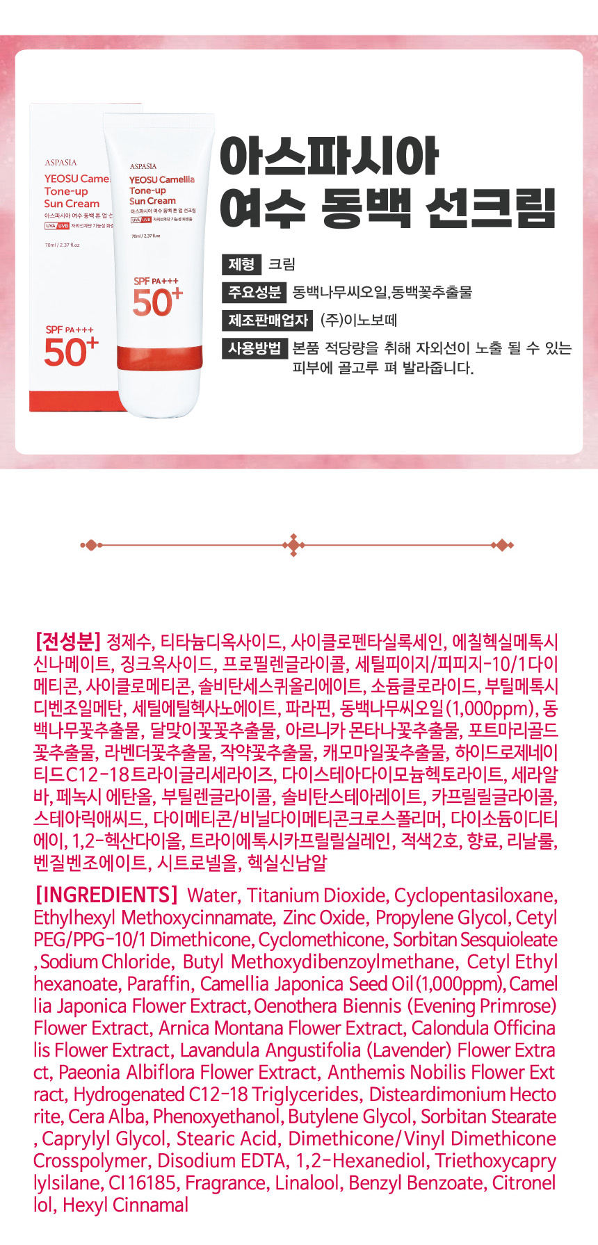 [아스파시아] 카멜리아 톤업 선크림 70ml 1+1