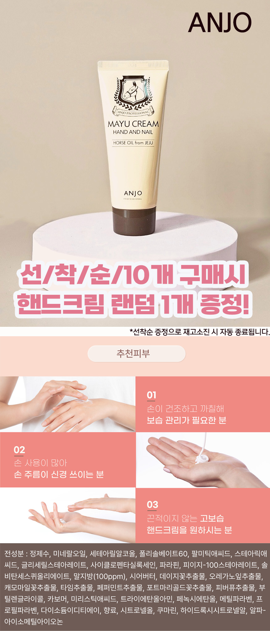 [앙쥬] 마유코팅 고보습 핸드크림 10개세트