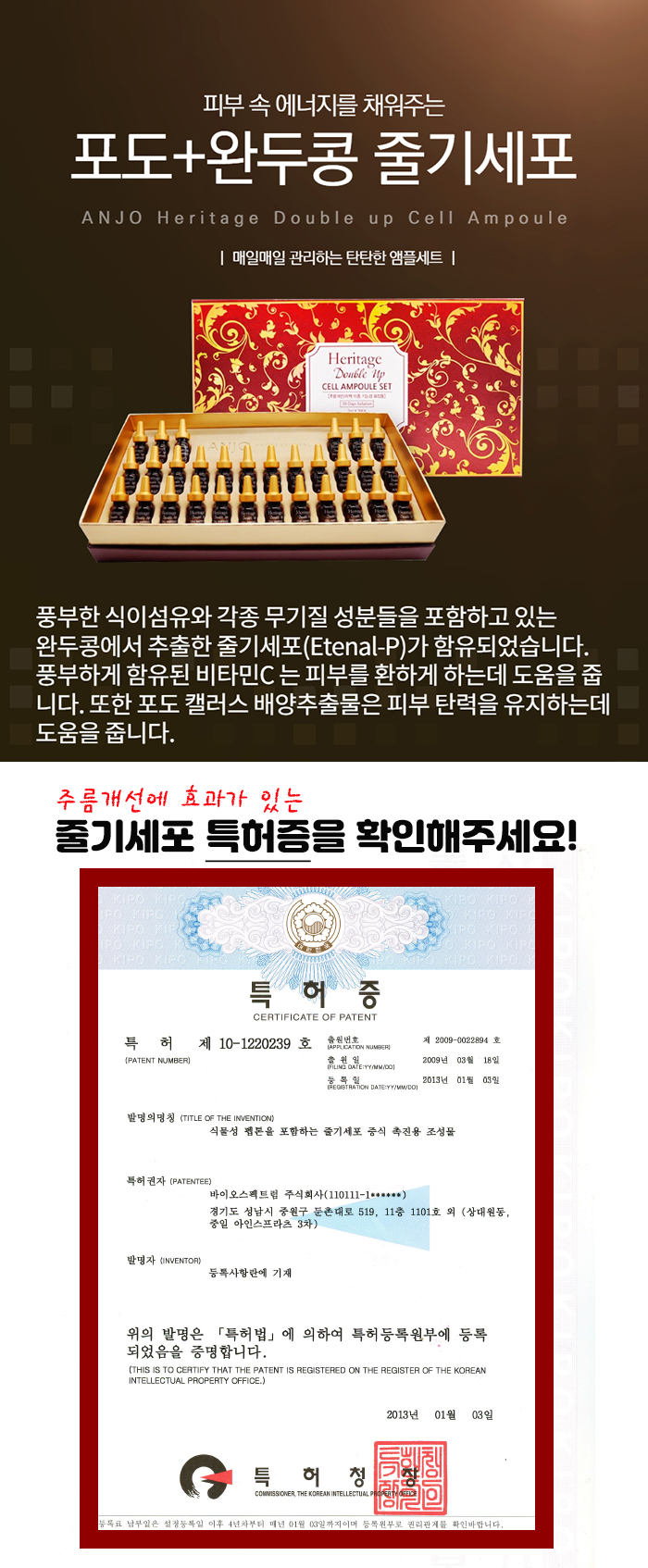 [앙쥬] 헤리티지 줄기세포 앰플세트 2ml*30EA