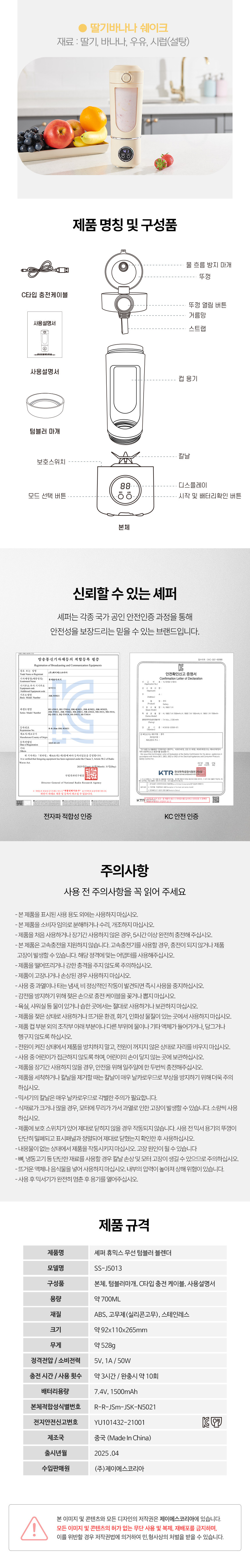 [셰퍼] 휴믹스 무선 텀블러 블렌더 SS-J5013