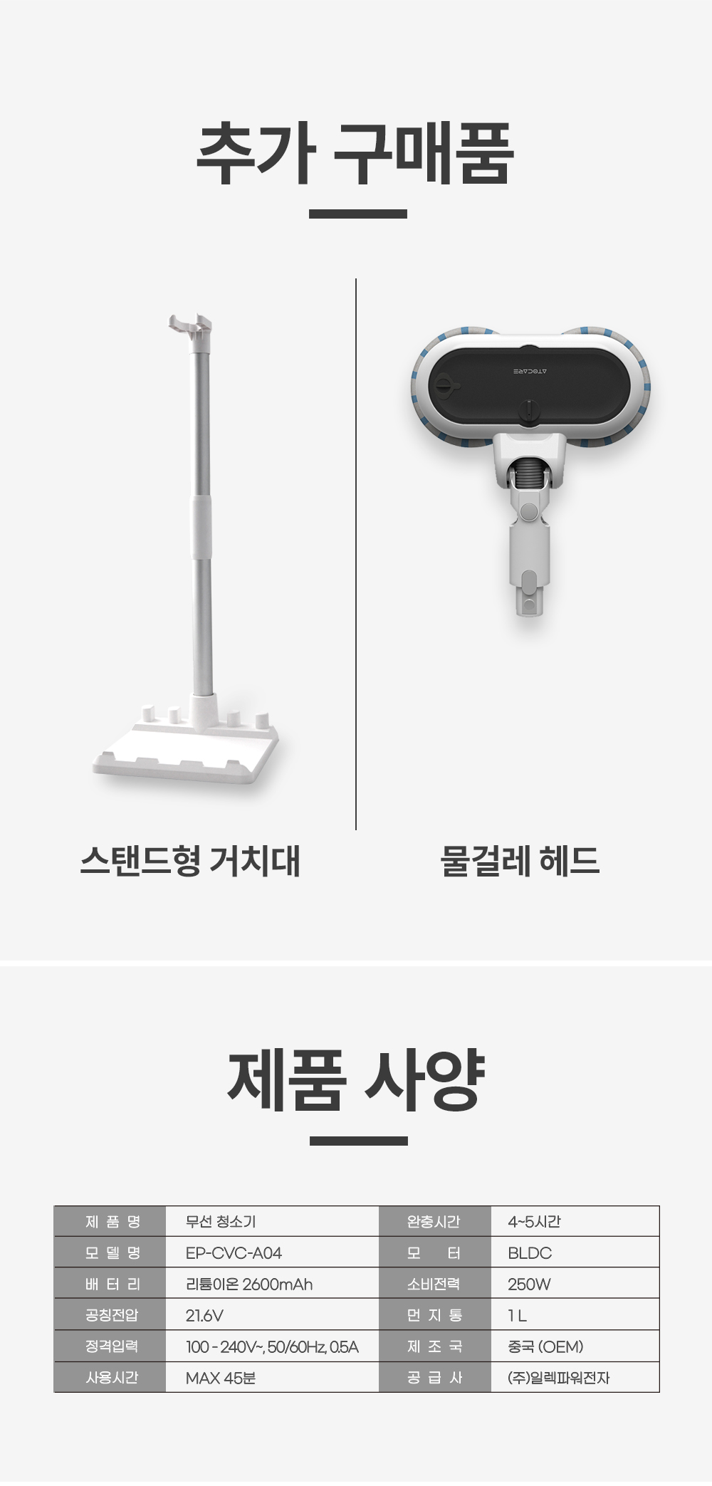 [아토케어] 하이퍼스톰 무선청소기(EP-CVC-A04)
