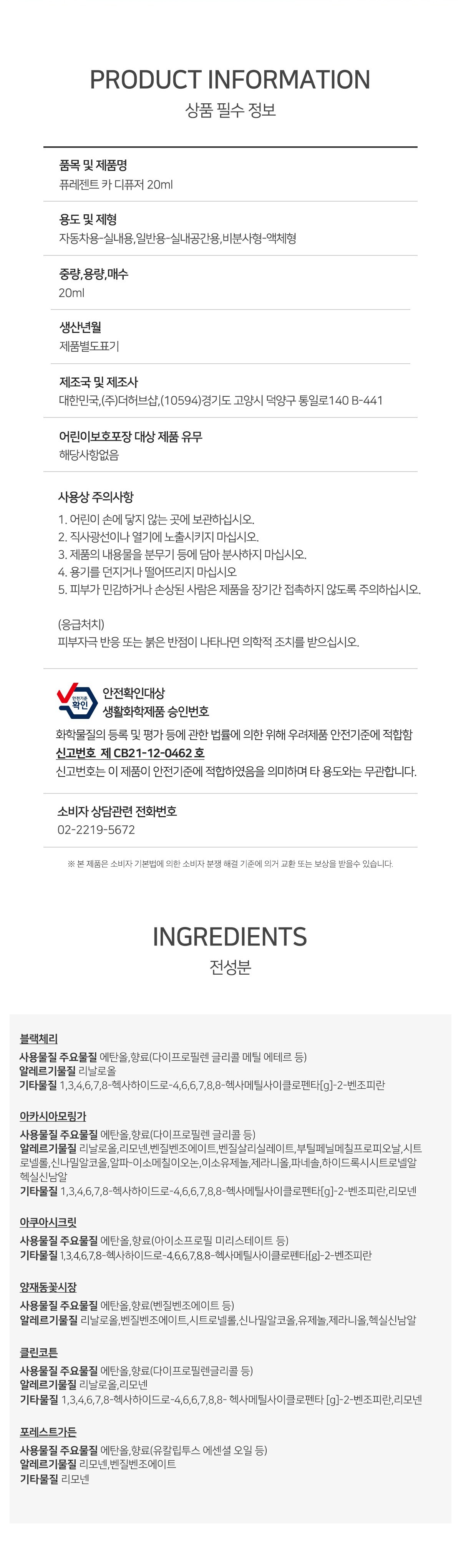 [더허브샵] 퓨레센트 송풍구타입 차량용 디퓨저 20ml