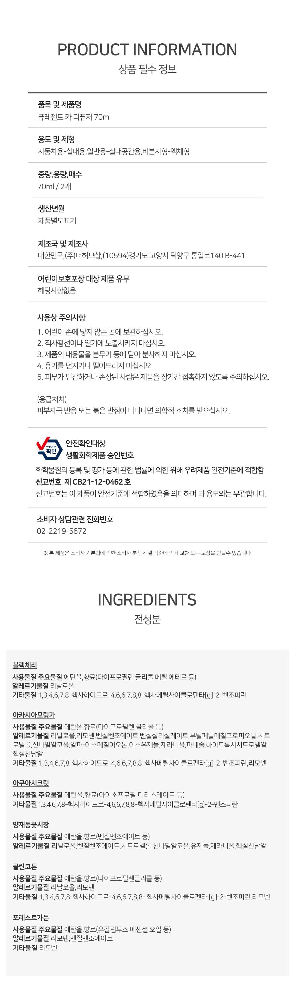 [더허브샵] 퓨레센트 카 디퓨저 70ml 2종 세트