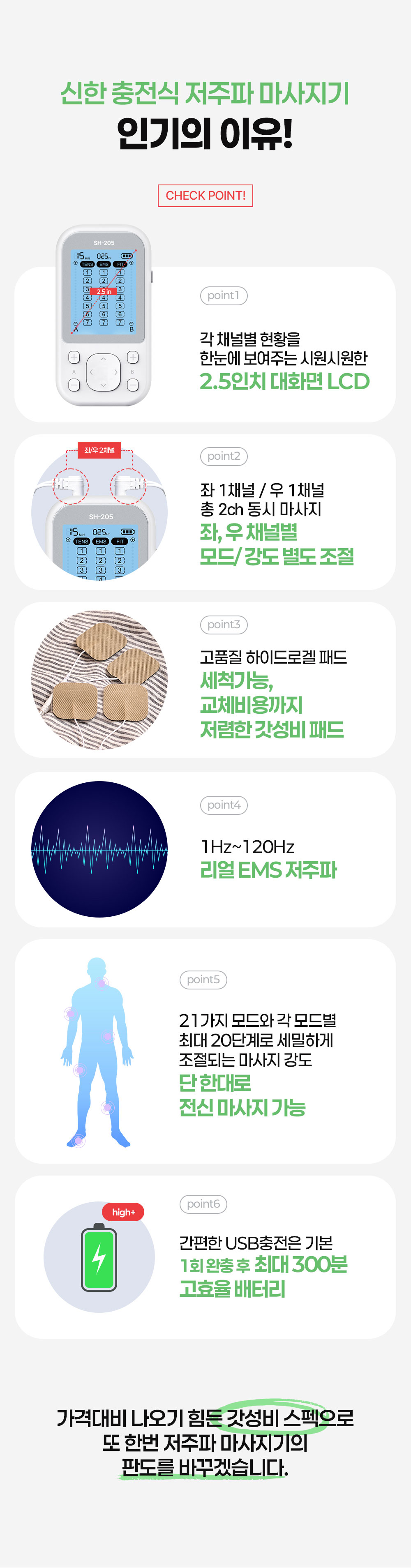 [신한의료기] 무선 저주파마사지기 패드형 sh-205