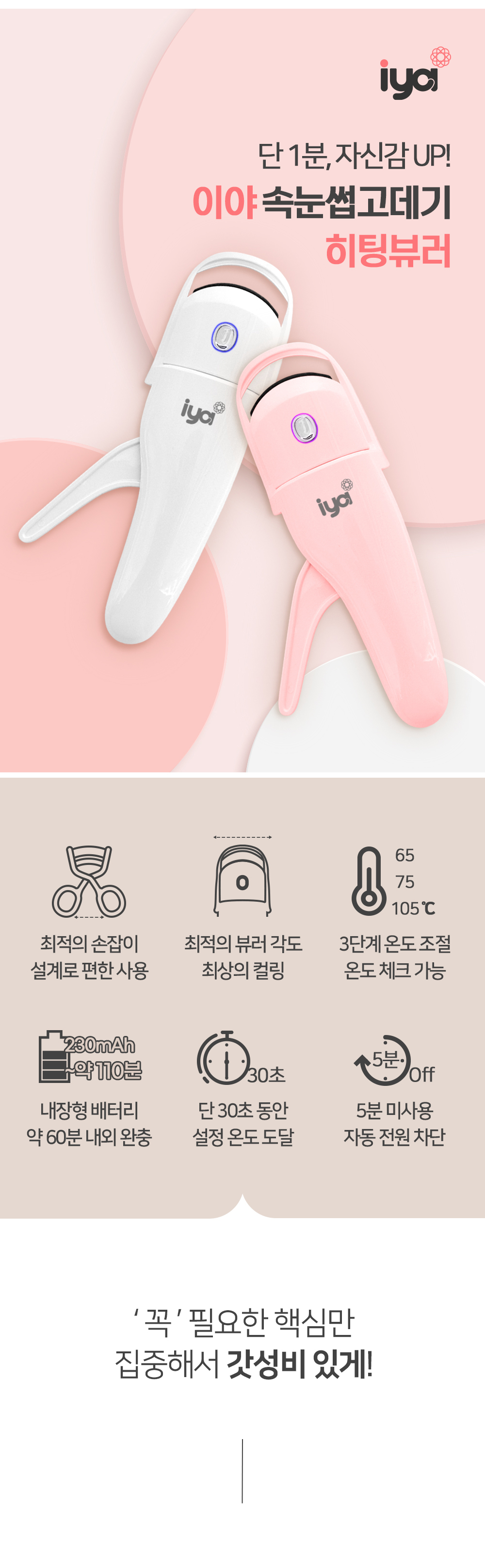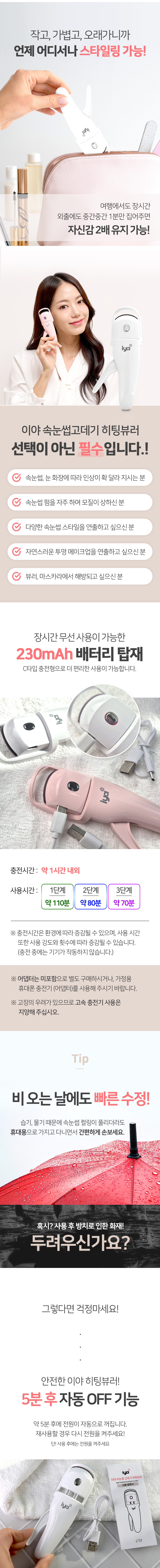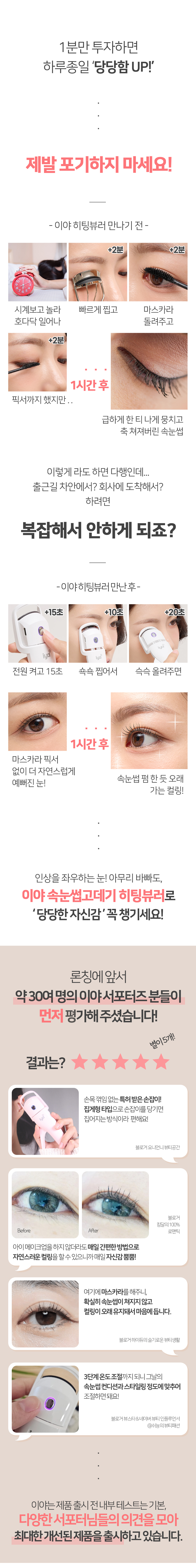[이야] 속눈썹 고데기 히팅뷰러 USB충전 (화이트/핑크)