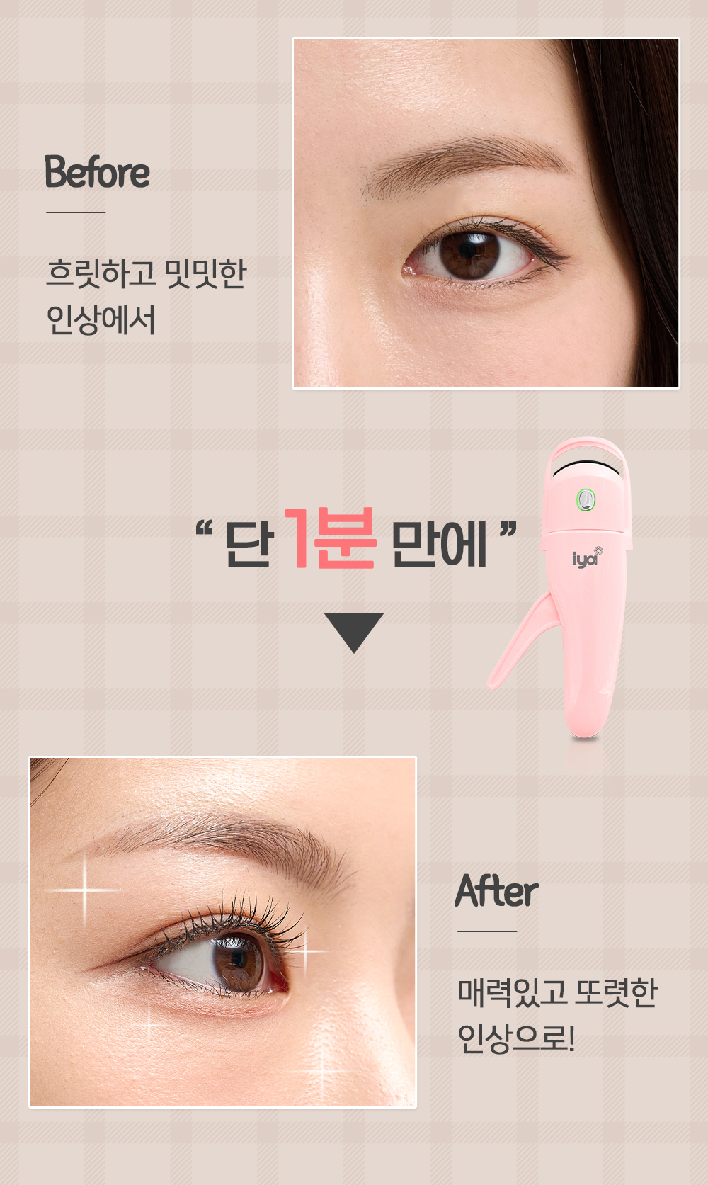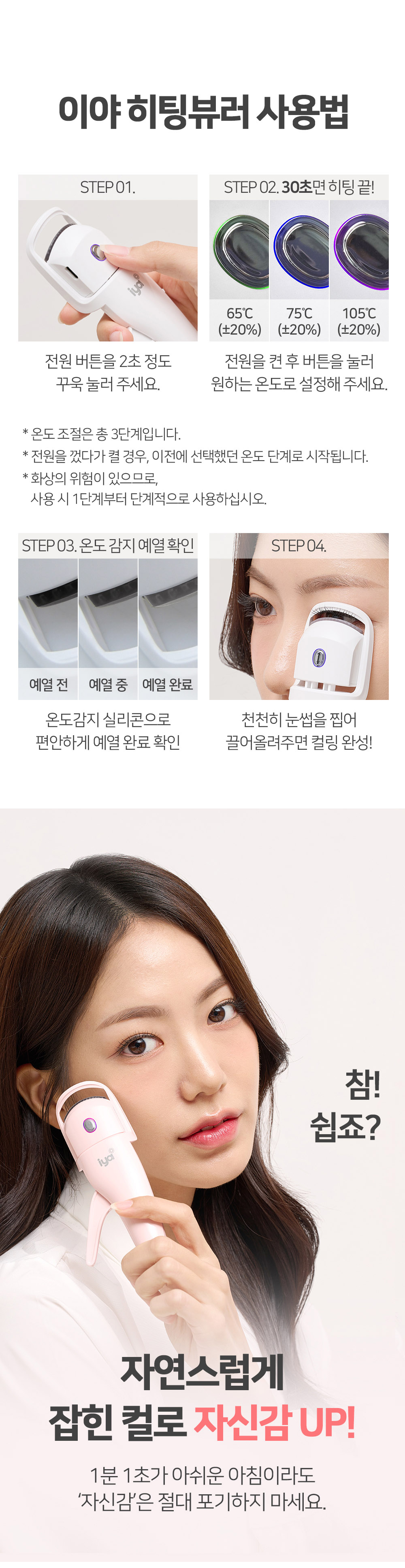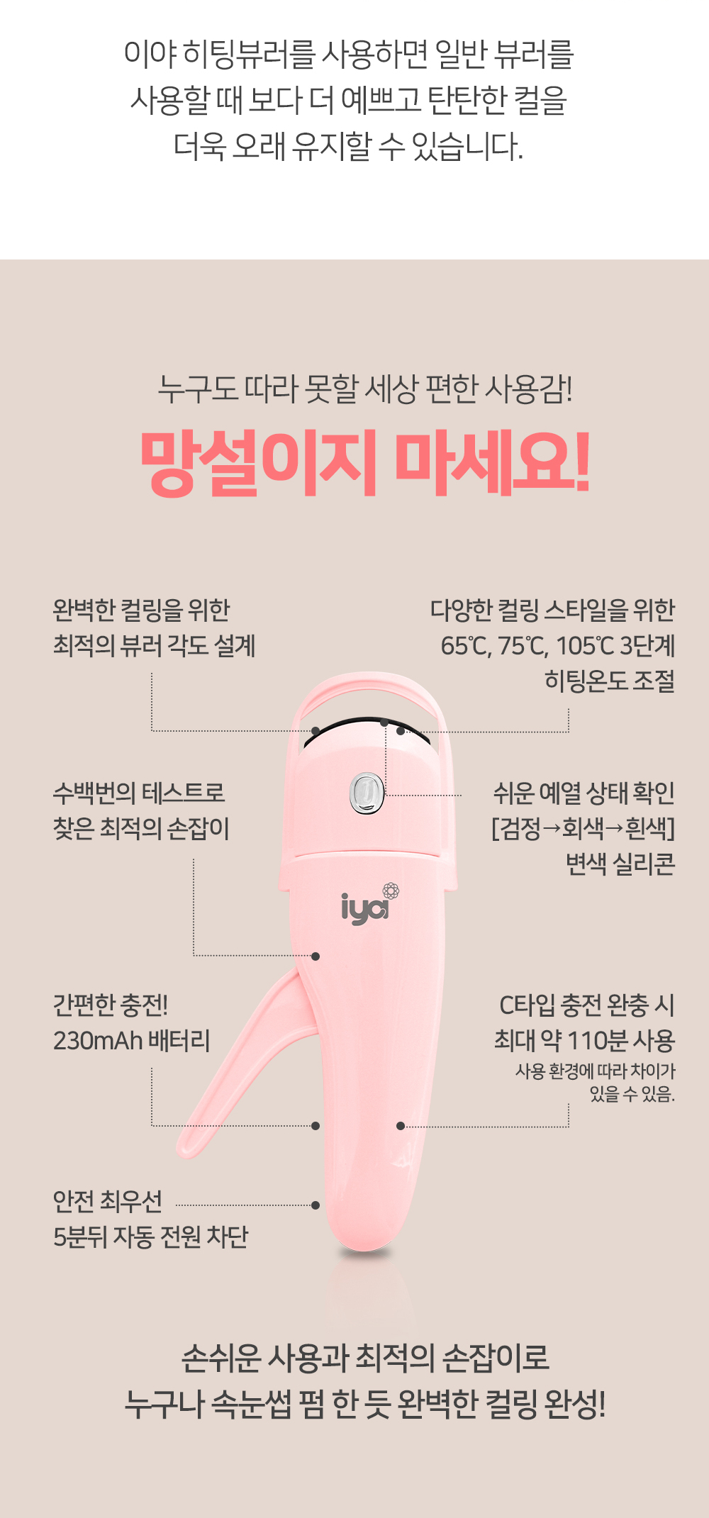 [이야] 속눈썹 고데기 히팅뷰러 USB충전 (화이트/핑크)