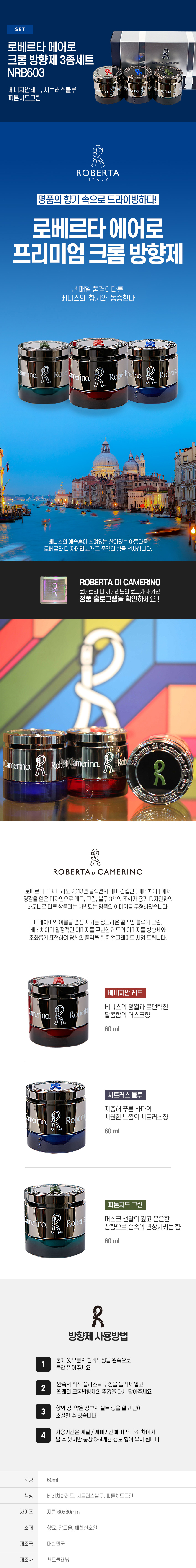 [로베르타] 에어로 차량용 크롬 방향제 3종세트 NRBG603