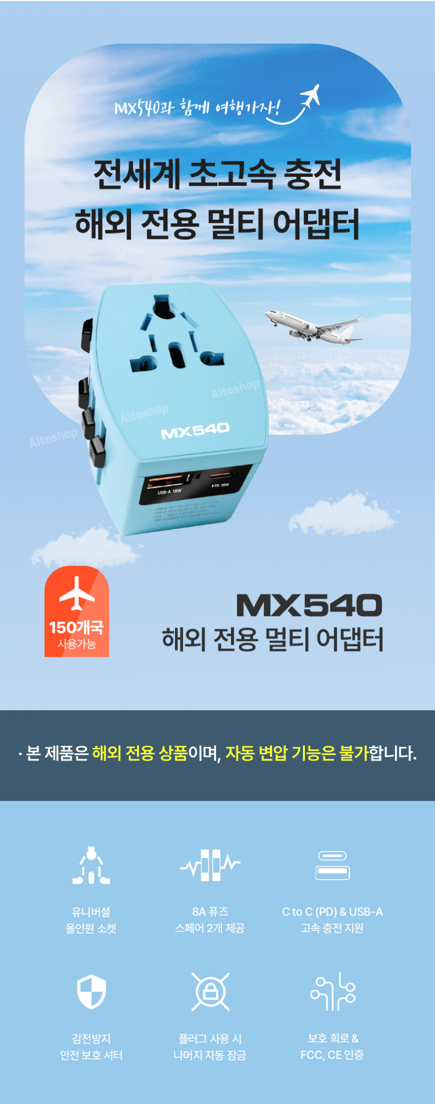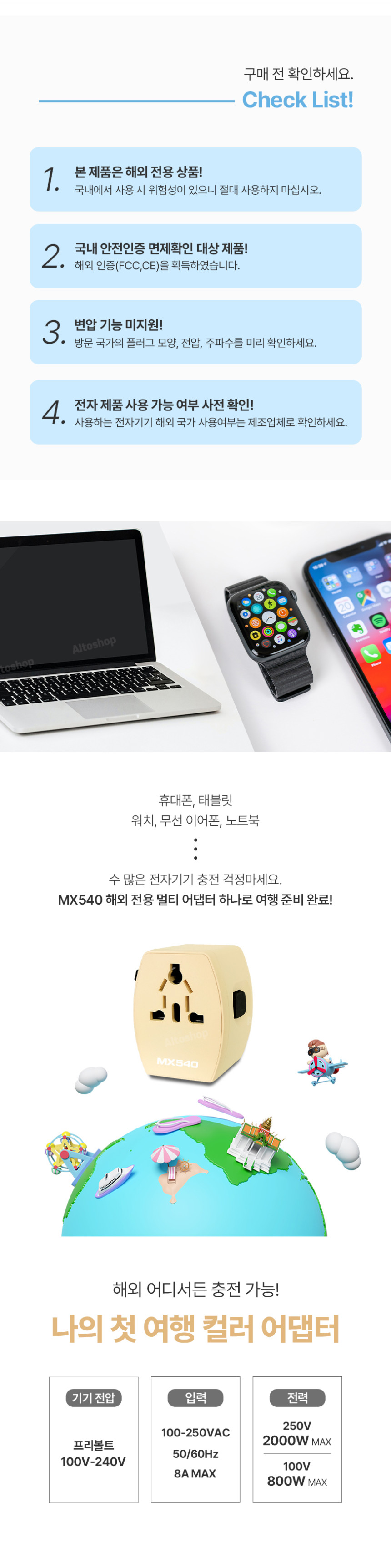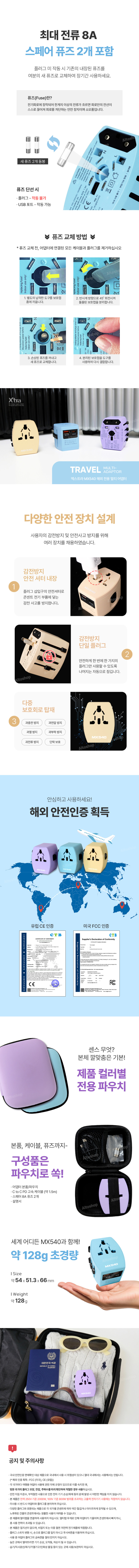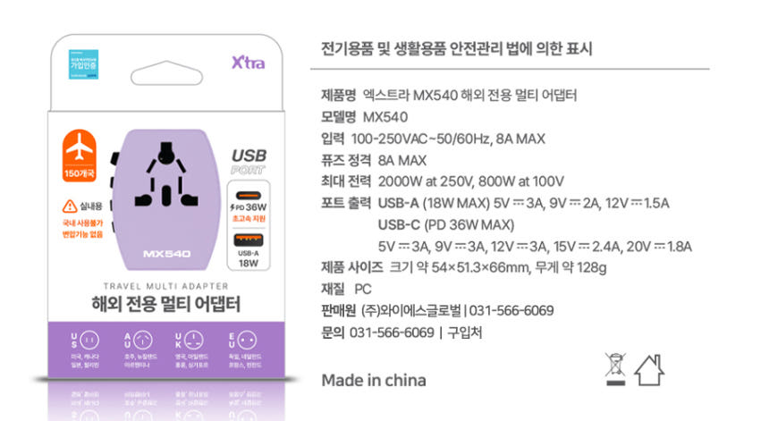 [엑스트라] MX540 해외 전용 CE/FCC인증 멀티 어댑터 (C타입/USB 충전지원)