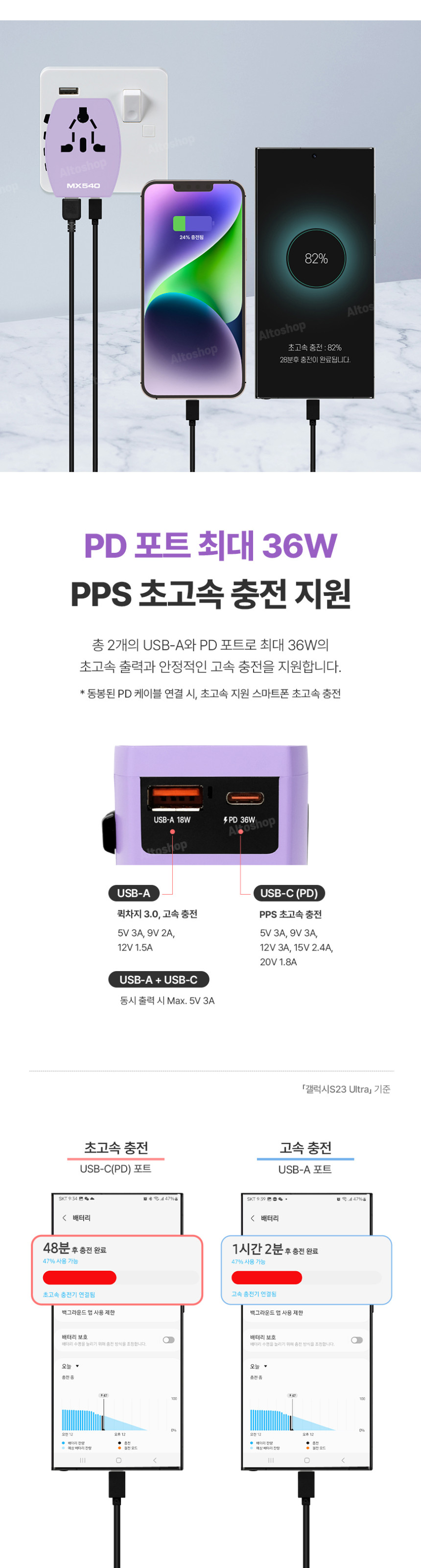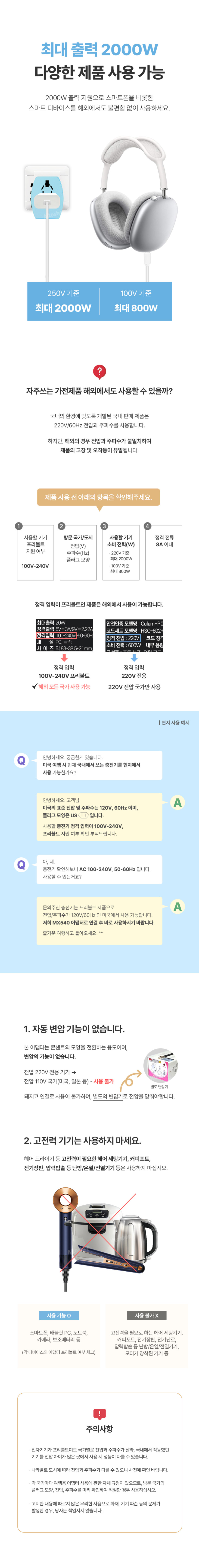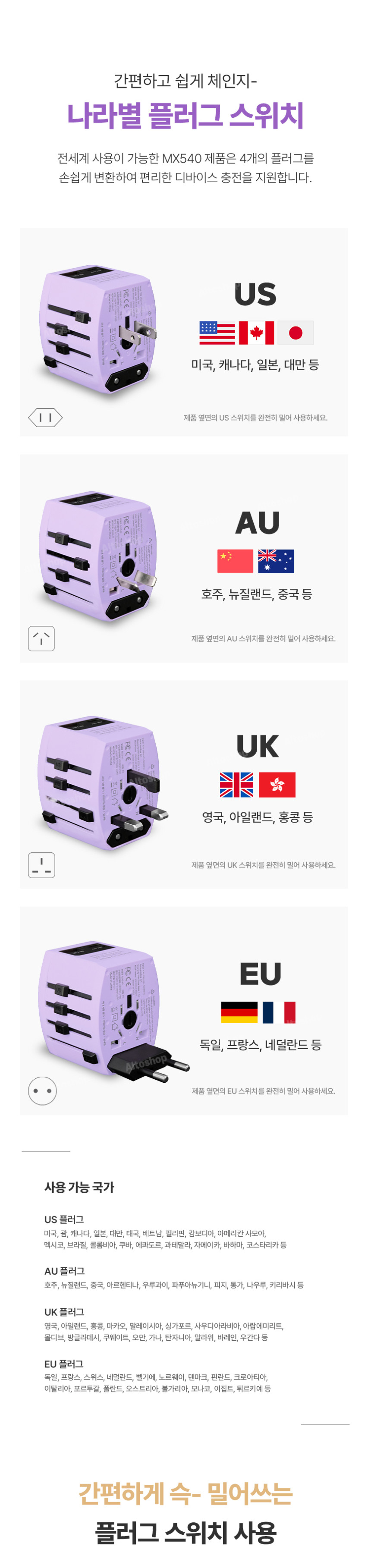[엑스트라] MX540 해외 전용 CE/FCC인증 멀티 어댑터 (C타입/USB 충전지원)