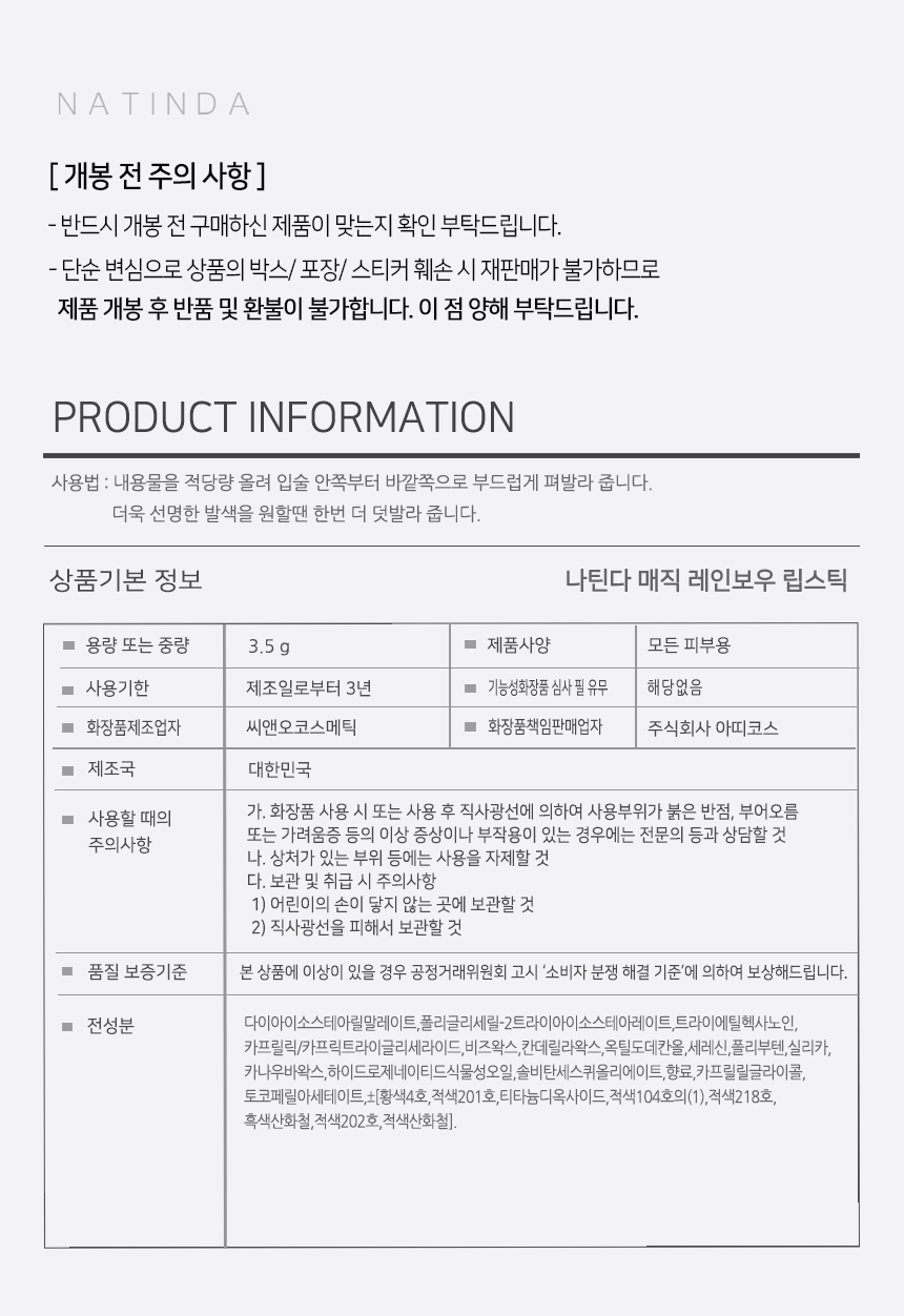 [나틴다] 건조함 걱정 없는 매직 레인보우 립스틱 3.5g-믹싱러브