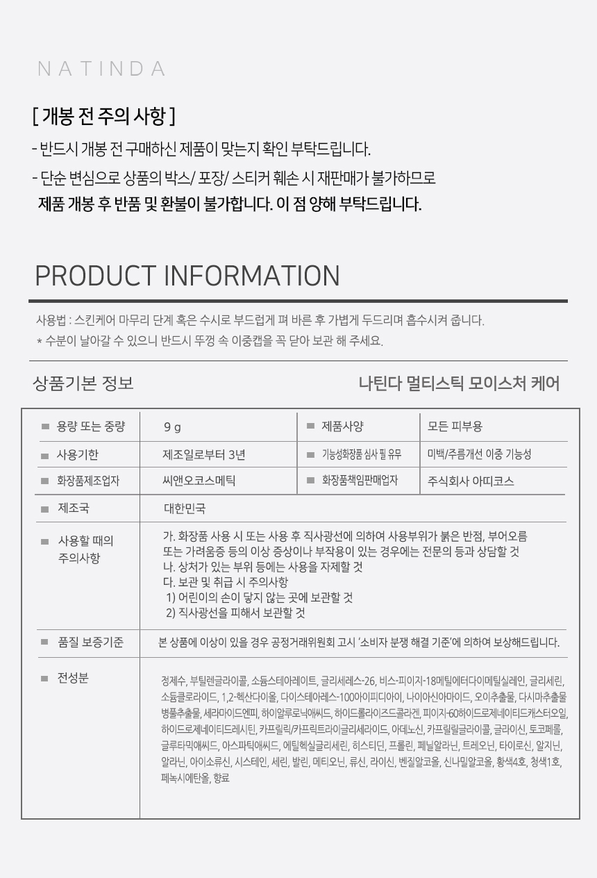 [나틴다] 멀티스틱 모이스처 케어 9g