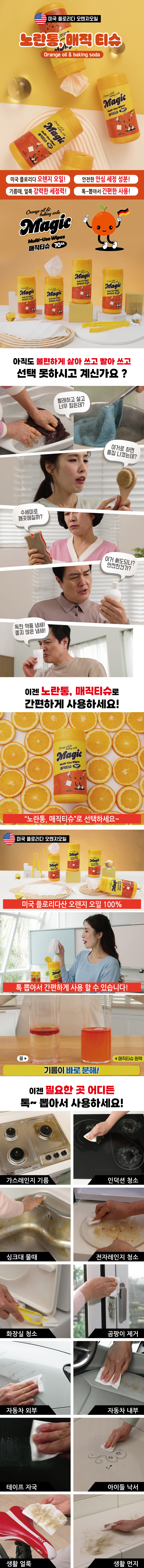 노란통 오렌지오일 찌든때 클리너 매직티슈 1세트 (4통)